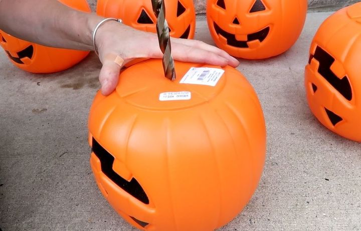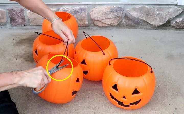 How to make a seasonal pumpkin planter for halloween. Make a Pumpkin Color When the white color became dried I put on a deep orange color on the container so that the containers color look like as a pumpkin. Rebar Purchase 4 rebar rods and place them into a pot yellow circles. Get pumpkins Run do not walk to Walmart where plastic pumpkin pails are only 100 while supplies lastFor one planter purchase 5 pumpkins.