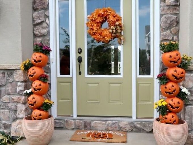 Pumpkin Totems Stacks And Towers Fall Halloween Decor Halloween Outdoor Decorations Fall Outdoor Decor