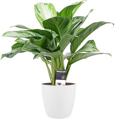 Zimmerpflanze Von Botanicly Kolbenfaden In Weissem Ubertopf Als Set Hohe 50 Cm Aglaonema Commutatum Silver Bay Amazon De Garten