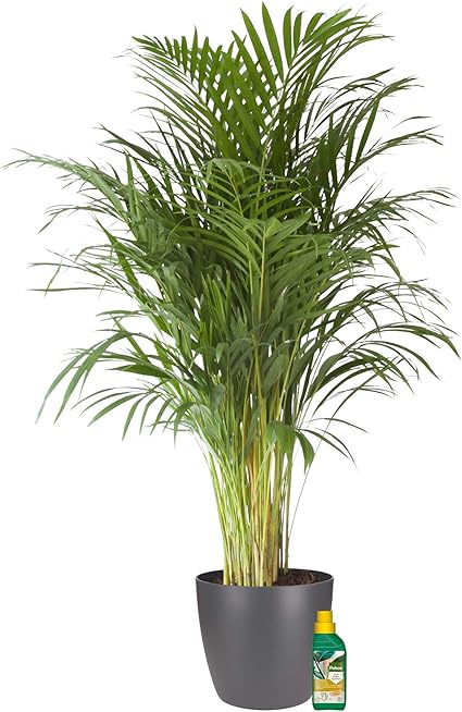 Zimmerpflanze Von Botanicly Goldfruchtpalme In Anthrazitfarbenem Ubertopf 250 Ml Dunger Als Set Hohe 90 Cm Areca Dypsis Lutescens Amazon De Garten