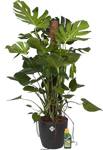 Zimmerpflanze Von Botanicly Fensterblatt In Anthrazitfarbenem Ubertopf 250 Ml Dunger Als Set Hohe 120 Cm Monstera Deliciosa Amazon De Garten